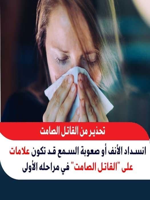 انسـ.ـداد الأنف أو صعوبة السمع قد تكون علامات على “القــاتـل الصـامــ.ــت” في مراحله الأولى